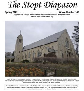 Whole Number 148 – Spring 2022 – Welcome new Chapter President, Joseph Poland and new Member at Large, Ryan Mueller; view Previously Undocumented Organs of Lake County, Illinois: Part One