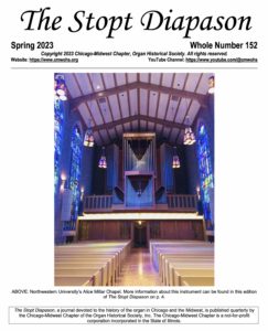 Whole Number 152 – Spring 2023 – Features stop lists, photographs, and brief histories of the organs to be played at the 2023 Great Lakes Regional AGO Convention, June 25-28,2023 as hosted by the North Shore Chapter of the American Guild of Organists.