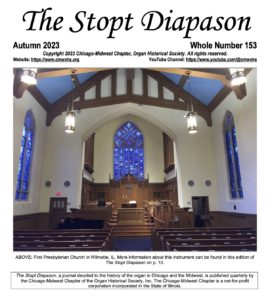 Whole Number 145 – Autumn 2020 featuring four instruments in a virtual video organ crawl with the North Shore AGO chapter and our Chicago-Midwest OHS chapter. (Also, see the link to the video on the Links page of this website.)